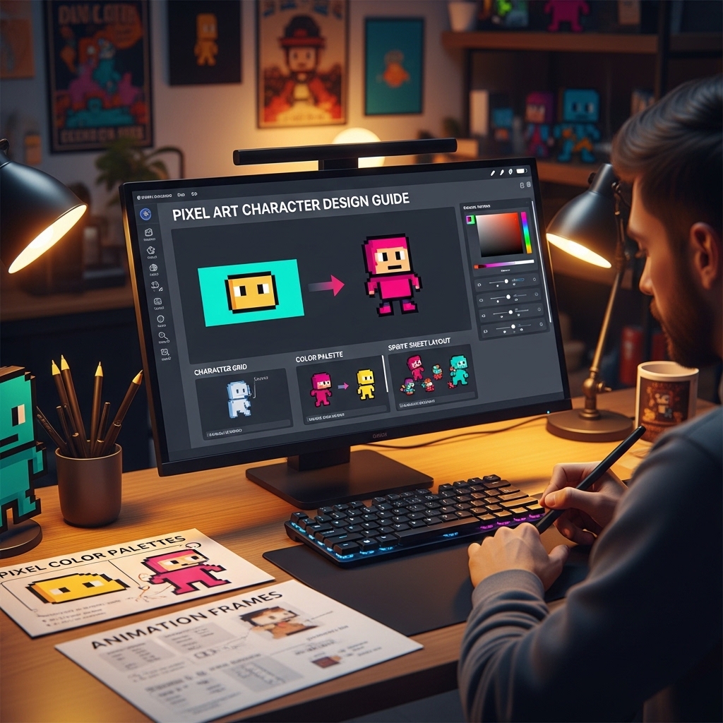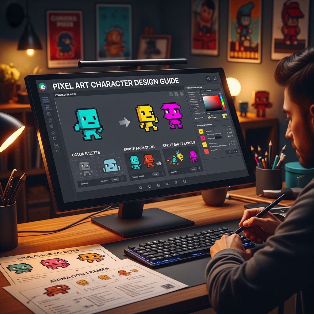 The Pixel Art Character Design Guide covers those decisions systematically — the resolution choices, the palette construction, the silhouette design, the animation principles, and the technical implementation considerations that turn a technically correct sprite into a character that players form genuine attachment to. 🎨